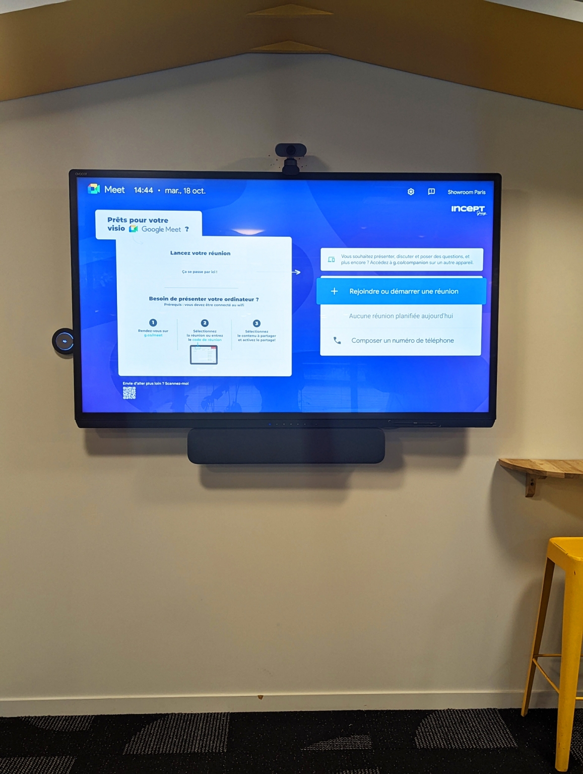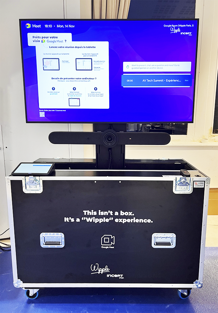 Pour se simplifier la vie, on a mis un système Google Meet dans une box (à roulettes évidemment) !