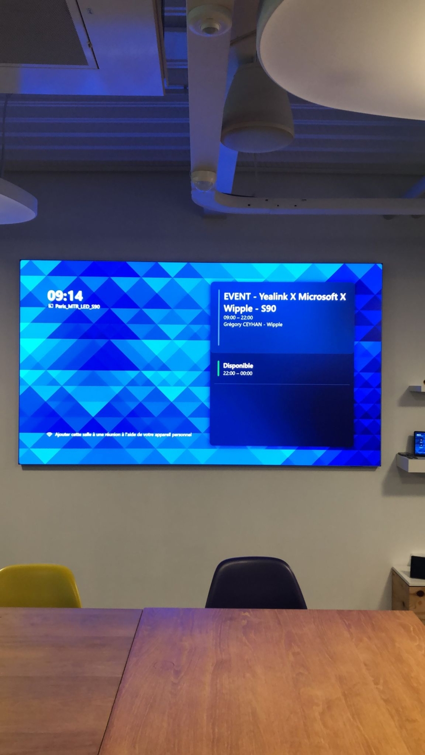 Une fois positionnée à l’endroit de votre choix, il vous suffit de l’alimenter et la connecter au réseau pour démarrer votre réunion Teams. En 10 minute c’est bouclé !